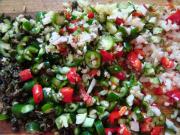 将海椒切碎,花椒剁细,加入姜米、蒜米、鸡精、味精、盐码30分钟。