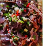 - [2013-02-28]双椒鸡胗 [图]主料: 鸡胗 200克 配料: 美人椒 30克 红朝天椒 10克 新花椒 10克 姜片 3片 姜米 5克 蒜米 5克 大葱头 2根 小葱 2根 盐 5克 鸡精 5克 味精 3克 胡椒粉 3克 白芝麻 3克 1