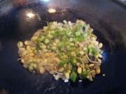 下酸菜叶和青蒜叶翻炒两下,调入味精。