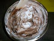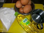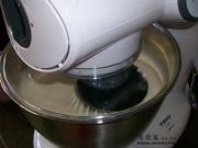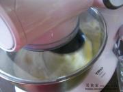 把海绵混合粉,鸡蛋和水加入搅拌容器里。