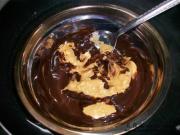 取1片蛋糕片,抹上一层厚厚的巧克力花生奶油馅。
