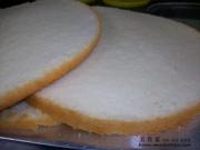 蛋糕考好后,冷却脱模。等分切3块蛋糕片。