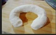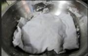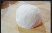 将水徐徐倒入装着面粉的盆中,揉成面团。