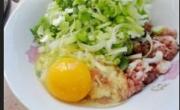 在肉沫中,加入大葱沫,鸡蛋,盐,油,淀粉。