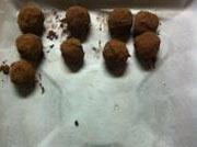 将揉搓成团子的巧克力裹上可可粉或抹茶粉或杏仁碎等