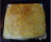 烤好后稍微防凉,撕去锡纸,用叉子在背面差一些孔(这样利用卷起)。然后刷上一层薄薄的沙拉酱撒上肉松。