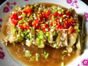 阅读(4946) 回复(0) 查看全文>> - [2013-02-09]话梅汁蒜蓉茄子 [图]主料: 长茄子 2根 辅料: 九制话梅 5粒 姜 4片 蒜 3瓣 葱 3根 调料: 油 1茶匙 盐 半茶匙 酱油 少许 香油 少许 胡椒 少许 淀粉 1茶匙 剁椒 1茶匙 1