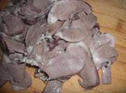 煮熟的猪心切薄片。
