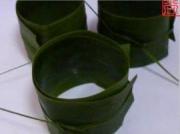 粽叶卷成圆筒状。