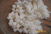 米饭中加入年糕、橄榄油拌匀,成为‘年糕饭’备用;