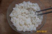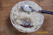 年糕米饭中,加入桂花粉、白砂糖;