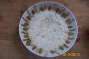 准备大小适宜的碗,按图在碗底码放葡萄干和陈皮;