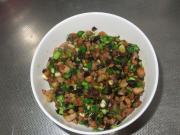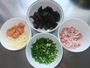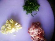 瘦肉切粒 蒜头切粒 葱切葱花。