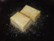 锅内放入油,烧至八成热时,将豆腐逐块下锅炸。