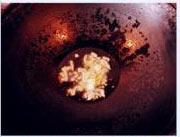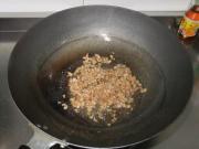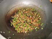 放蒜粒爆香。
