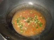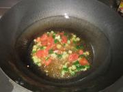 再放入黄瓜丁、西红柿丁、酱油和清汤烧开 。