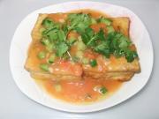 最后将汤汁倒在蒸好的豆腐箱子上即可。