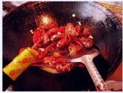放入龙虾快速爆炒一会。