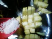 茄子切好后加盐腌一会,使其稍稍变软。