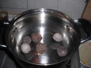 锅里水煮开,放进牛肉丸和猪肉丸。