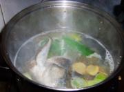 - [2012-03-28]【菜谱换礼】---美味鱼头豆腐汤 [图]主料:草鱼头、豆腐、生姜、香菜、葱。调料:油、料酒、盐、鸡粉、白胡椒粉。 1
