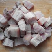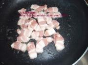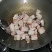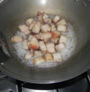 锅内入少许油烧热,放猪肉炒几分钟,肉炒出油后盛出备用。