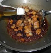 另起锅入少许清水,水开后入冰糖,待冰糖炒化起泡泡。