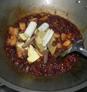 放香叶,八角,大葱,姜片,陈皮炒匀。