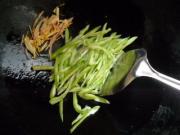 下青椒丝一块炒至断生,调入盐和味精拌匀即可。
