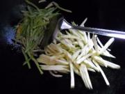 倒入切丝翻炒,加入盐、胡椒炒匀。