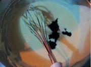 在舀出的奶酪糊中加入蓝莓酱调色用.然后放入裱花袋中。