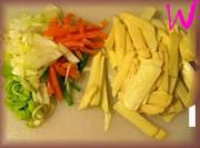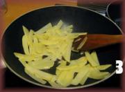 锅内放油(稍微多点),中火,土豆切片和胡萝卜片下锅炸到酥(一定要炸透)。