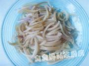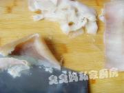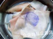 皮冻制作: 1、将猪皮加冷水,开旺火5分钟。