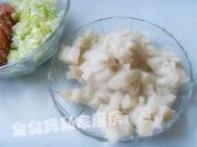 猪肉馅加入葱花、植物油、盐、胡椒粉同一方向搅拌上劲。