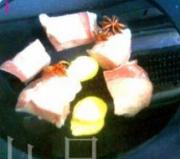 材料:生猪皮、葱、八角、胡椒粉适量猪肉、葱花、盐、糖、酱油、猪油、植物