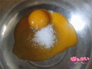 蛋清蛋黄分开打入无水无油的碗里,蛋清加30克糖。