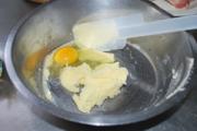 黄油室温软化,加入糖拌匀。烤箱预热175度。
