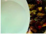 下入炸好的茄子,接着下适量白糖、盐、白醋、鸡精均匀翻炒。