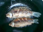 鲫鱼两面都煎黄时加入葱,姜,蒜,尖椒,淋上酱油,陈醋(加入陈醋时把火打到最大,将陈醋的从锅周围淋入,让陈醋从锅边流入鱼里面,鱼吸收时更均匀些)。