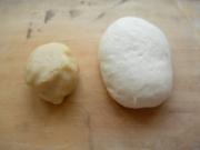 醒好的面团也分成6份,擀成面皮,一张包上一份酥皮面团。