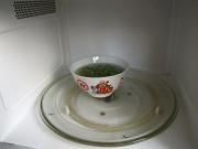 青豆放适量的水,在微波炉中转2分钟至熟。