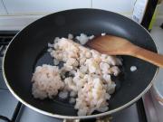 待油微热时,放进虾仁。