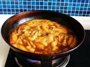 辣椒变软以后倒入铲出的花甲螺,翻炒几次,倒入生抽三汤匙,再翻炒,放鸡精,盐适量,最好能试着味放,因为花甲螺本身就是海鲜是咸的,所以盐少放点。