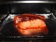 将五花肉放入预热好的烤箱开始烤制。