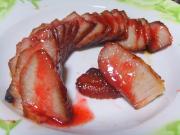 将熬熟的腌料汁浇在切好的叉烧肉上就可以了。