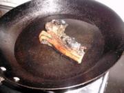 锅里放入腊肉煸炒出油。