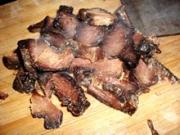 煮好的腊肉晾凉切片。