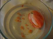 在西红柿底部划一个十字,在冰水里泡一下,去皮。