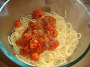 - [2012-02-27]正宗的素食版番茄意面 [图]材料:中等大小西红柿 两个洋葱 1/4个蒜 两瓣调味品:意大利混合香料(italian seasoning,或干牛至 -- dried oregano,没有也可以不加)糖盐橄榄油 1