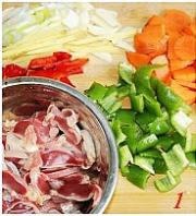 主料:鸡珍、胡萝卜、青红椒;配料:大蒜、葱、姜、蚝油。